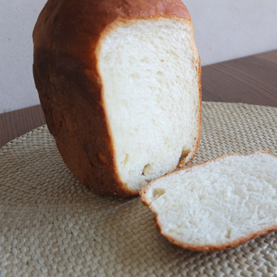 - パンケースに計量した強力粉・砂糖・塩・スキムミルクを入れ、軽く混ぜます。
